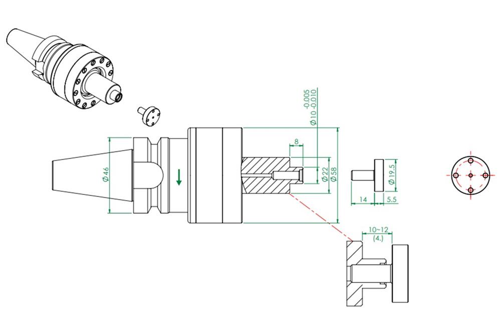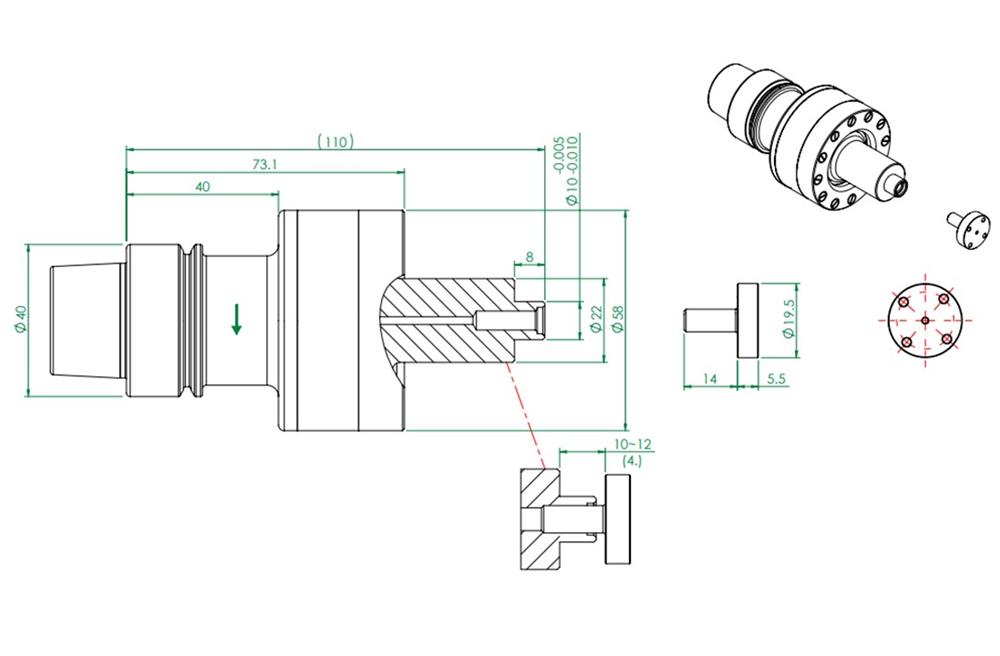 HSK-E40-W02-1008 Ultraschall-Schleifscheibenaufnahmen: Produktzeichnung & Abmessungen