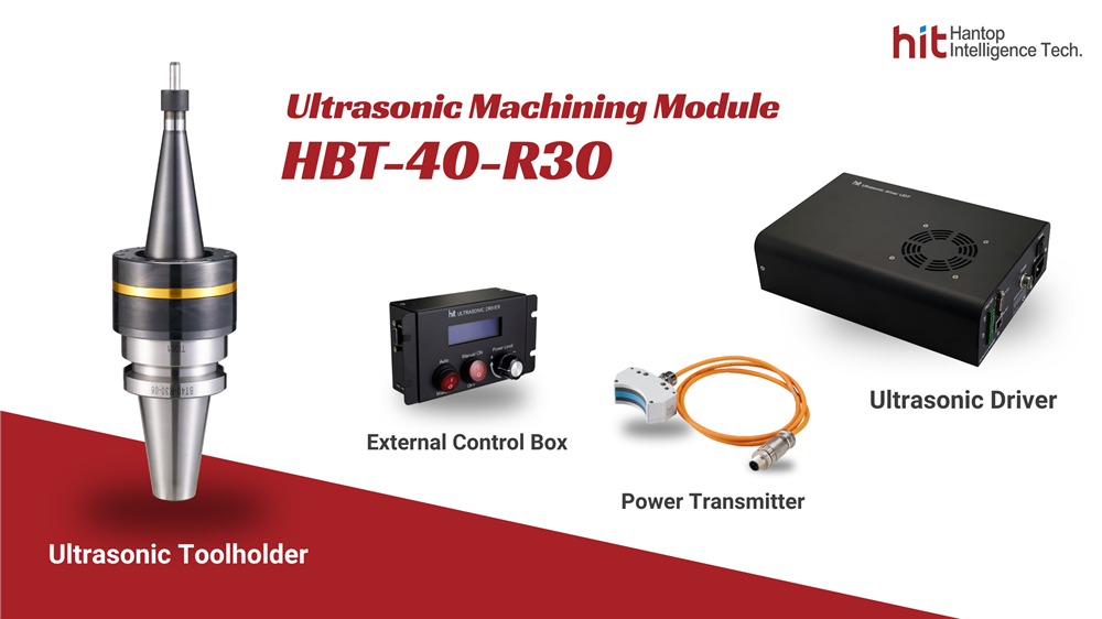Ultrasonic Machining Tool Holder - HBT Series Slim Type HBT-40-R30 HBT Series♦ Well-applied to Deep Drilling Process♦ Balance Quality Grade G2.5♦ High Precision Runout <5 μm♦ Special Ultrasonic Slim Type Tool Holder♦ Slim Design Prevents Interference and Maintains Precision♦ Available for CTS♦ High Rotation Speed to 24,000rpm♦ Great for Cavity Feature♦ Dual Restraint♦ Perfect Choice for Tight Space Applications Back to list Product Information *The ultrasonic toolholder module includes: an ultrasonic driver, an ultrasonic toolholder, a power transmitter, and an external control box. HBT-40-R30 Ultrasonic Machining Module: Solution to Advanced Material Processing 1. Reduce nose diameters and extend nose length for less interference in 5-axis CNC machining. Ideal choice for confined space with deep hole drilling and micro machining. 2. The non-contact/wireless power transmission system allows high rotation speeds, suitable for high-precision advanced-material machining. 3. Modular design provides convenience and flexibility during installation. 4. Ultrasonic high-frequency vibration delivers high-efficiency and high-quality machining performance. 5. Ultrasonic vibration reduces cutting force, effectively extending tool life. 6. Intelligent automatic frequency-tracking system is developed for advanced materials and compatible with various machining tools. HBT-40-R30 Ultrasonic Toolholder: Product Specification Model HBT-40-R30 Balance Quality Grade G2.5 Run-out (4D) ≤ 5 µm Operating Frequency 20 ~ 34 kHz Max. Rotation Speed 24,000 RPM Collet Types SK06 (measured with high-precision collet) Weight 2.2 kg Automatic Tool Change (ATC) YES Coolant Through Spindle (CTS) 70 bar HBT-40-R30-SK06 Ultrasonic Toolholder: Product Drawing & Dimensions 📧 CONTACT US to obtain a more comprehensive solution! 📚 How does HIT Ultrasonic Machining enhance new material processing? 💡 Industrial Application Examples of Ultrasonic Machining