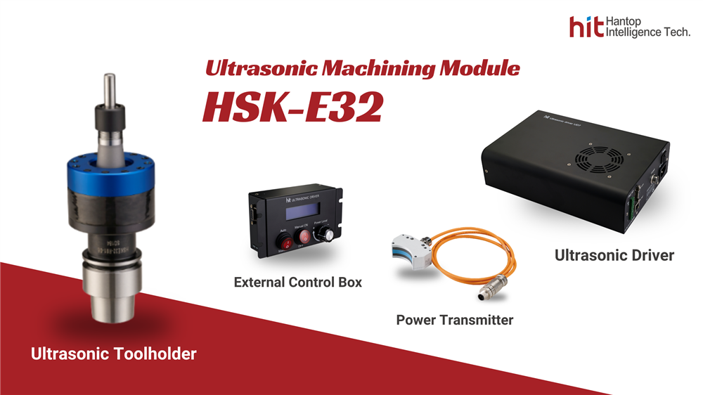 Ultrasonic Machining Tool Holder - HSK Series HSK-E32 HSK Series♦ Well-applied in Milling, Drilling, and Grinding processes♦ Spindle tilt is 1/10; shank tilt is 9.98♦ Dual restraint ♦ Provide a hollow design, the broaching mechanism penetrates into the arbor, tightens and expands, and fits the main shaft ♦ Usually applied in high speed, high precision machining and for industries like aerospace, automobile, and precision mold machining industries♦ HSK Series is a mainstream in Europe Back to list Product Information *The ultrasonic toolholder module includes: an ultrasonic driver, an ultrasonic toolholder, a power transmitter, and an external control box. HSK-E32 Ultrasonic Machining Module: Solution to Advanced Material Processing 1. The non-contact/wireless power transmission system allows high rotation speeds, suitable for high-precision advanced-material machining. 2. Modular design provides convenience and flexibility during installation. 3. Ultrasonic high-frequency vibration delivers high-efficiency and high-quality machining performance. 4. Ultrasonic vibration reduces cutting force, effectively extending tool life. 5. Intelligent automatic frequency-tracking system is developed for advanced materials and compatible with various machining tools. HSK-E32 Ultrasonic Toolholder: Product Specification Model HSK-E32 Balance Quality Grade G2.5 Run-out (4D) ≤ 5 µm Operating Frequency 20 ~ 32 kHz Max. Rotation Speed 38,000 RPM Collet Types SK06 (measured with high-precision collet) Weight 0.5 kg Automatic Tool Change (ATC) YES Coolant Through Spindle (CTS) 70 bar HSK-E32-R01-SK06 Ultrasonic Toolholder: Product Drawing & Dimensions 📧 CONTACT US to obtain a more comprehensive solution! 📚 How does HIT Ultrasonic Machining enhance new material processing? 💡 Industrial Application Examples of Ultrasonic Machining