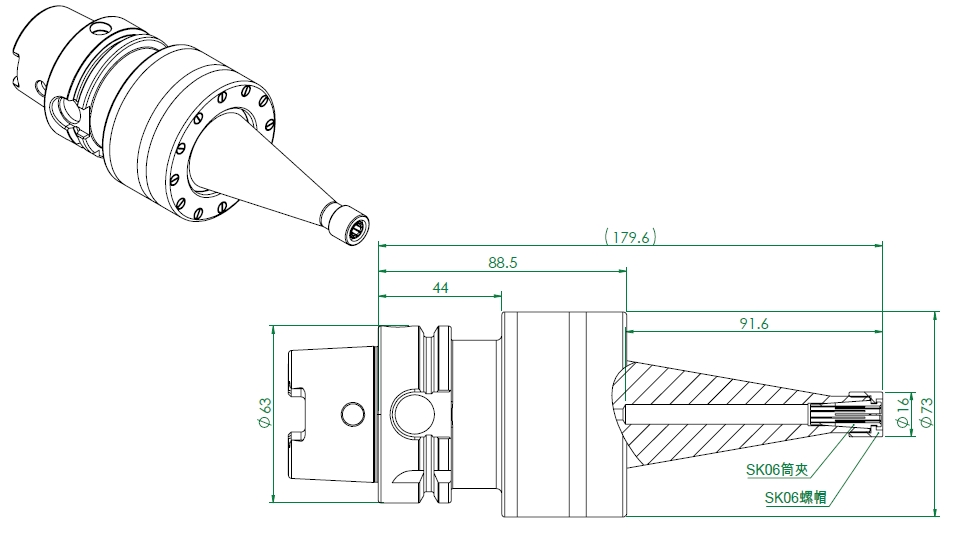 HSK-A63-R30-SK06 超音波刀把圖面